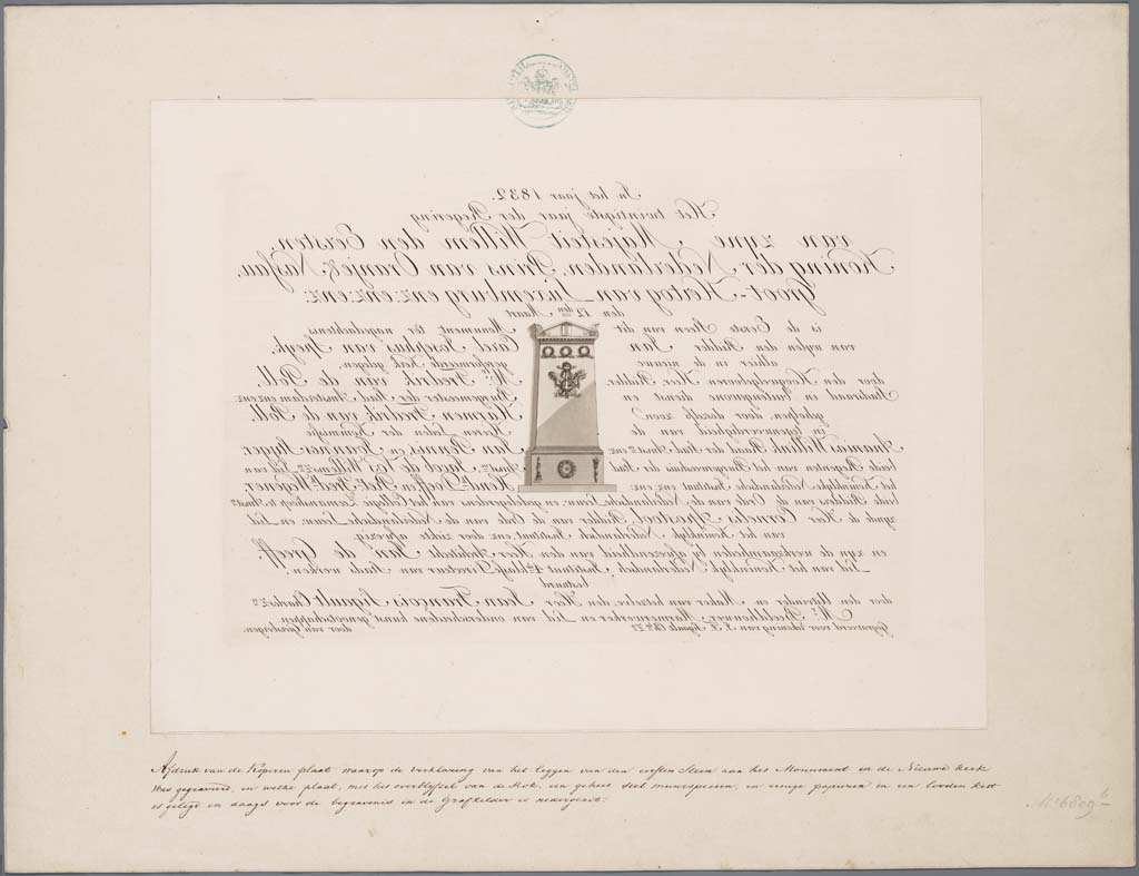 Spiegelbeeldige afdruk van de koperen plaat, welke i...