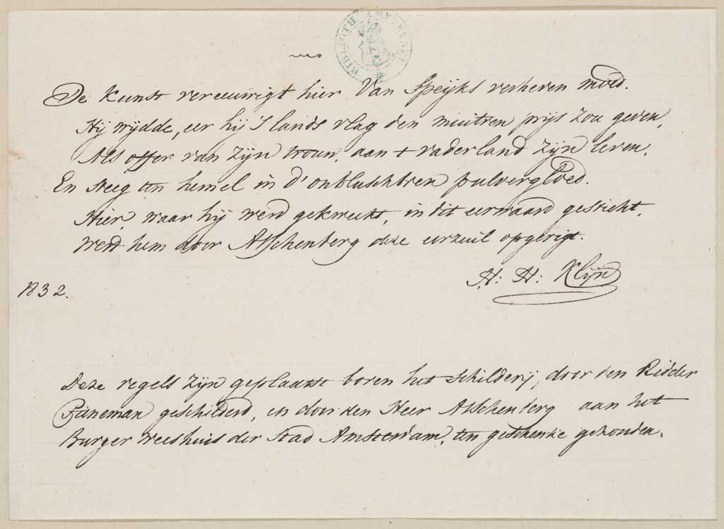 Gedicht op J.C.J. van Speijk, boven het schilderij v...