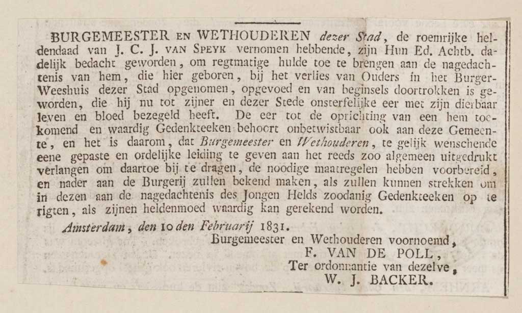J.C.J. van Speyk (1802-1831), wiens naam onsterfelij...
