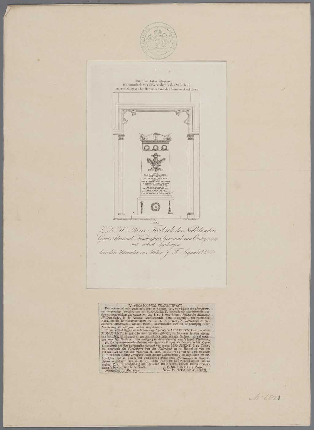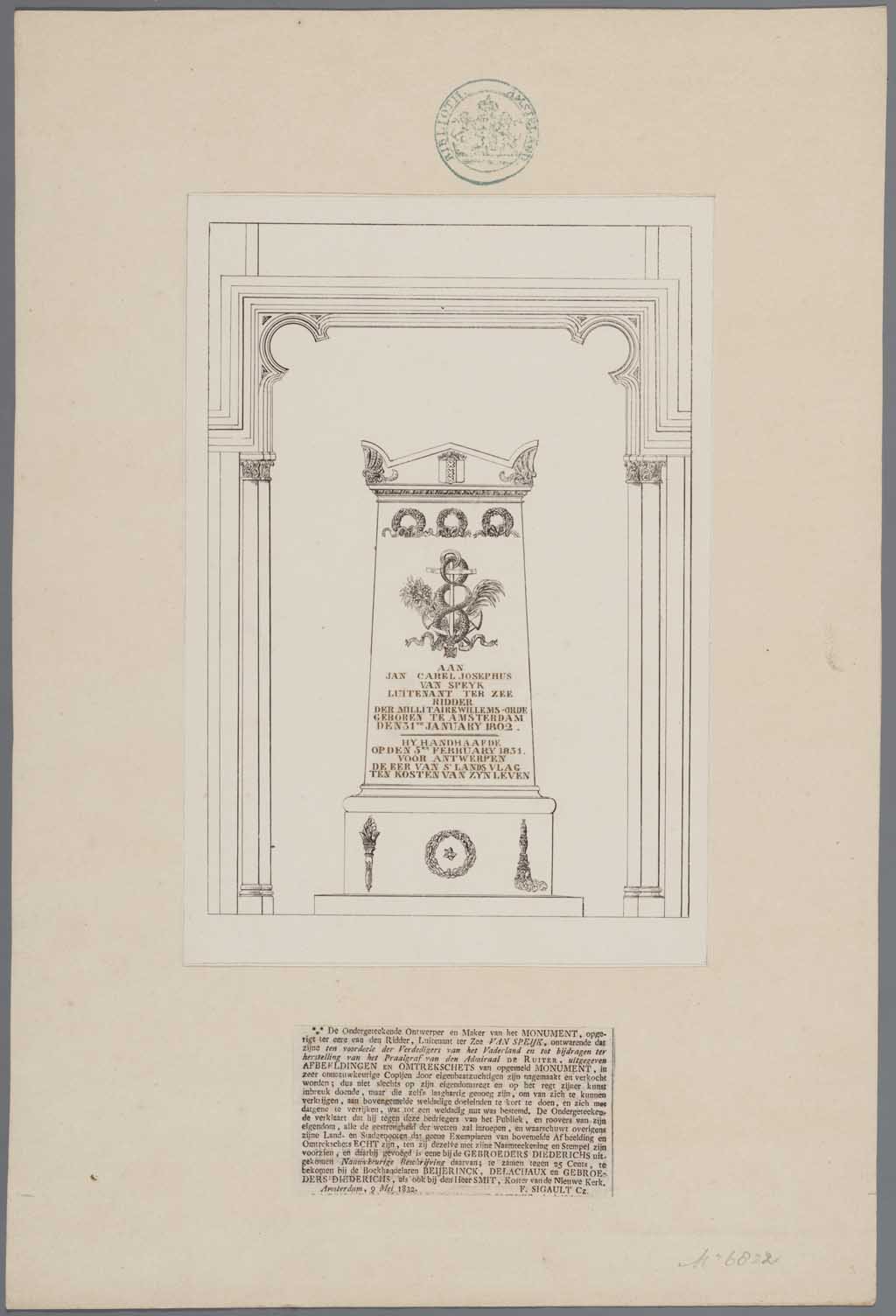 Praalgraf ter eere van den ridder van Speyk, in de N...