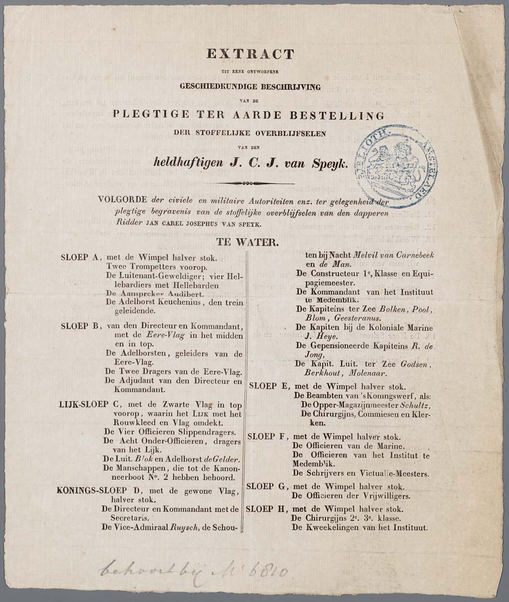 Uitgeknipte tekst over J.C.J. van Speijk (1802-1831)