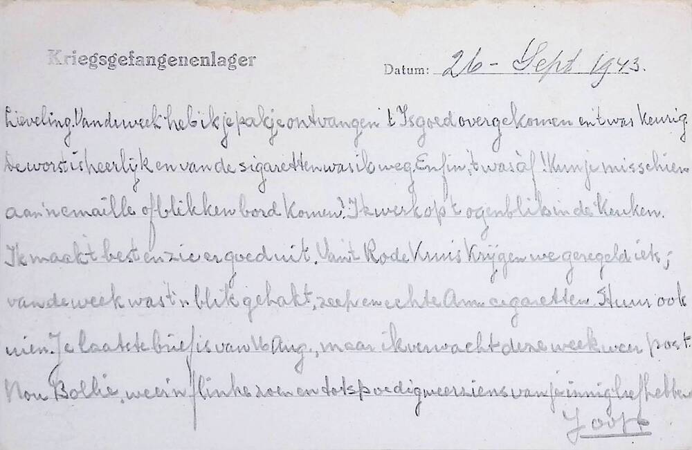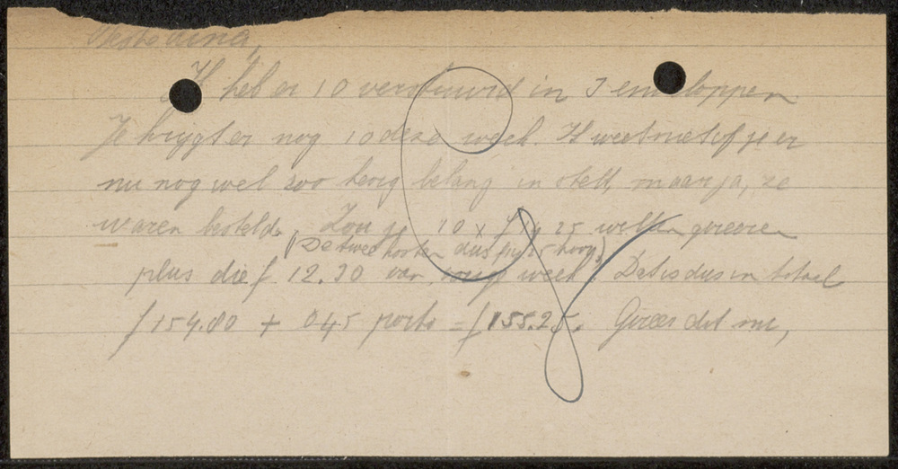 Met potlood geschreven briefje