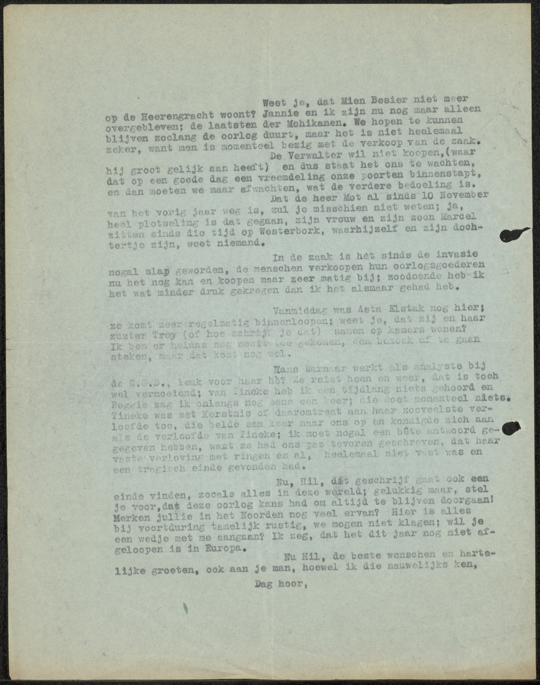 Afschrift Brief 7 juli 1944 aan Mew. Bevoort-Hubbeling