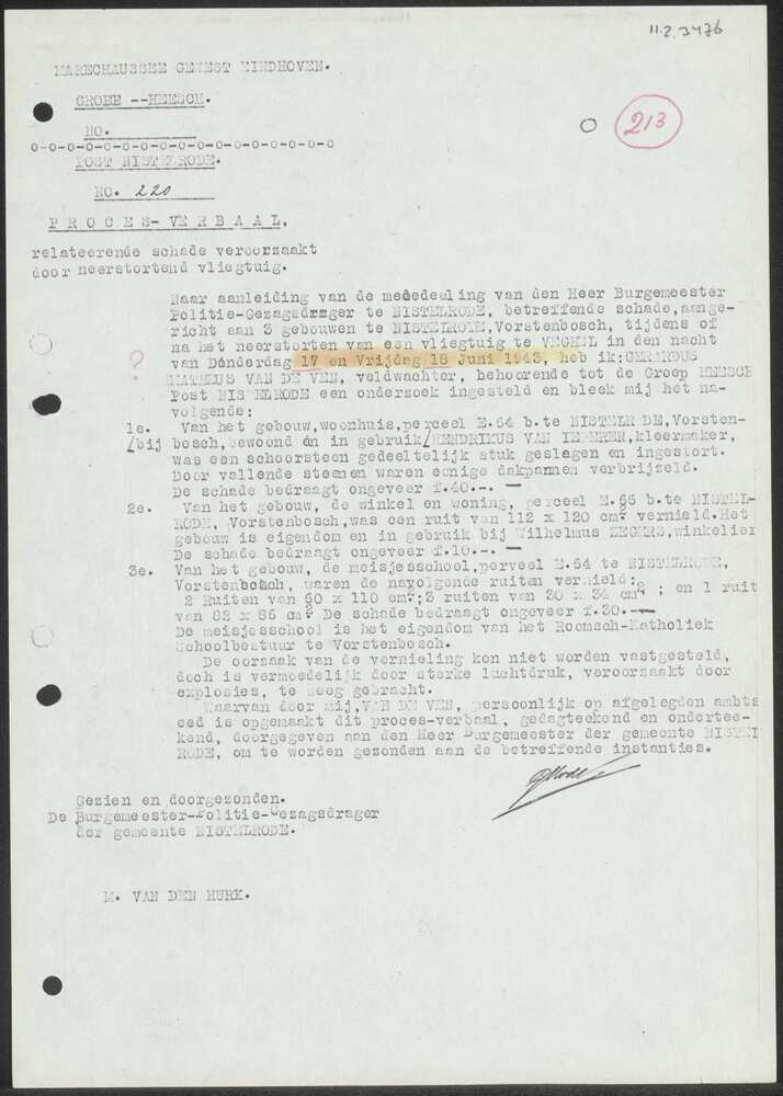Proces-Verbaal Marechaussee gewest Eindhoven groep H...