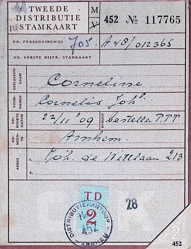 Tweede Distributiestamkaart op naam van Cornelisse, ...