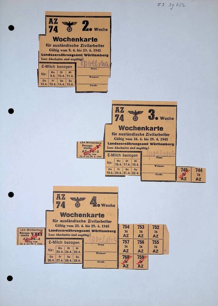 Een verzameling bonkaarten geplakt op een vel papier