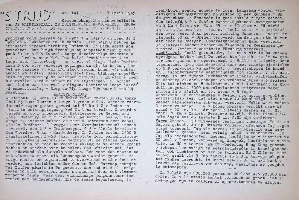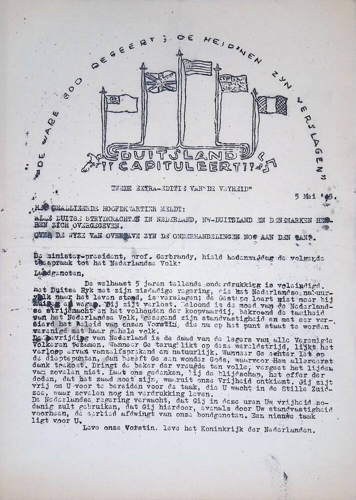 De Vryheid, tweede extra editie, 5 mei 1945