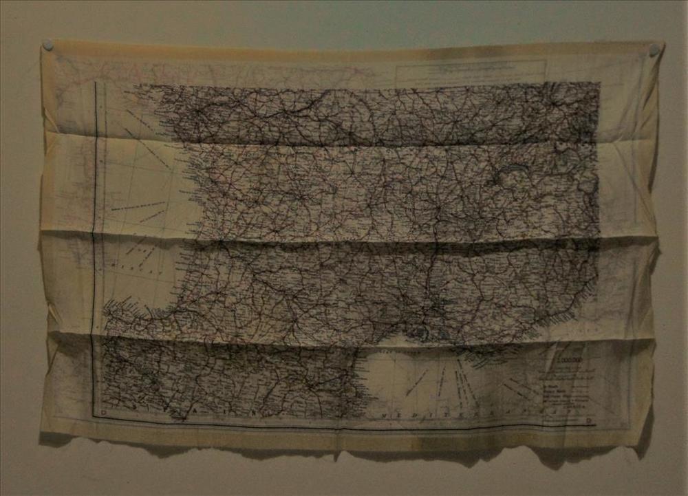 stafkaart gedrukt op een lapje stof. Spanje en Corsica