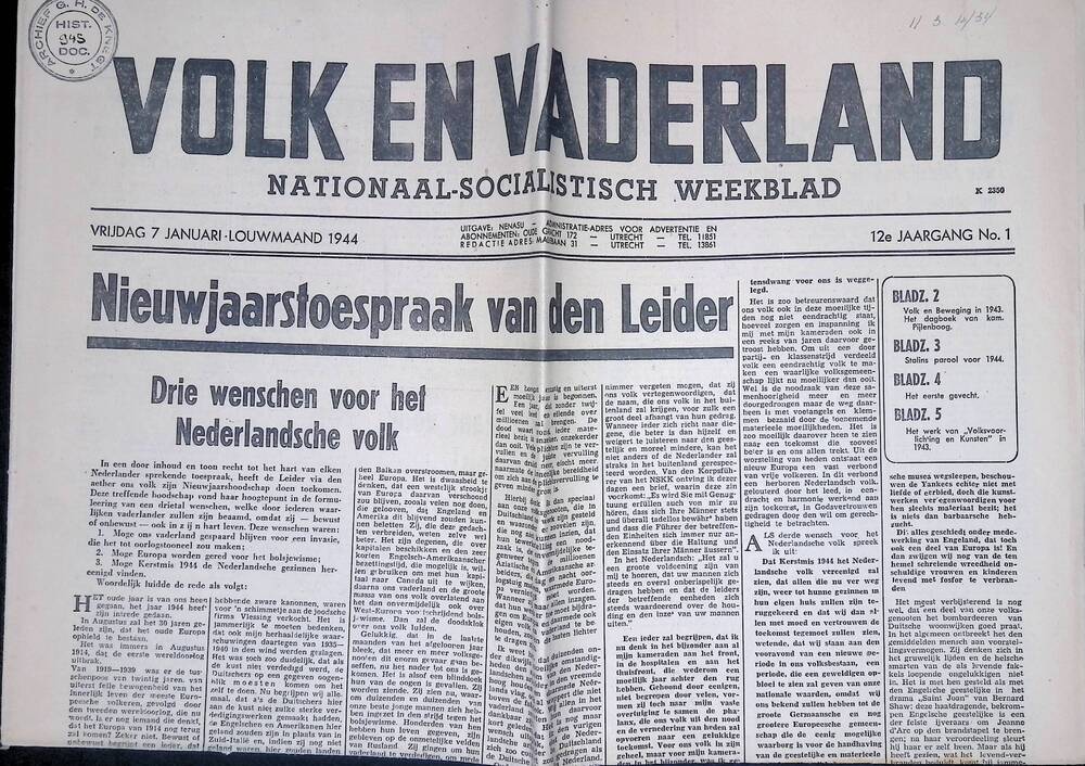 Volk en Vaderland, 7 januari 1944.