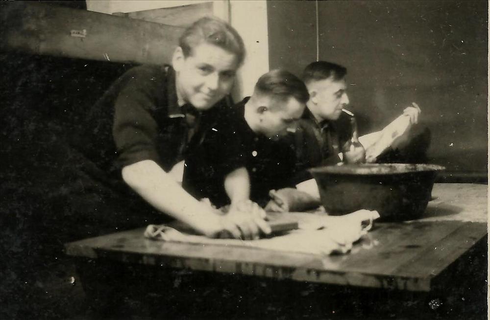 Berlijn 1942-1945; drie mannen, wasteil, schrobber, ...
