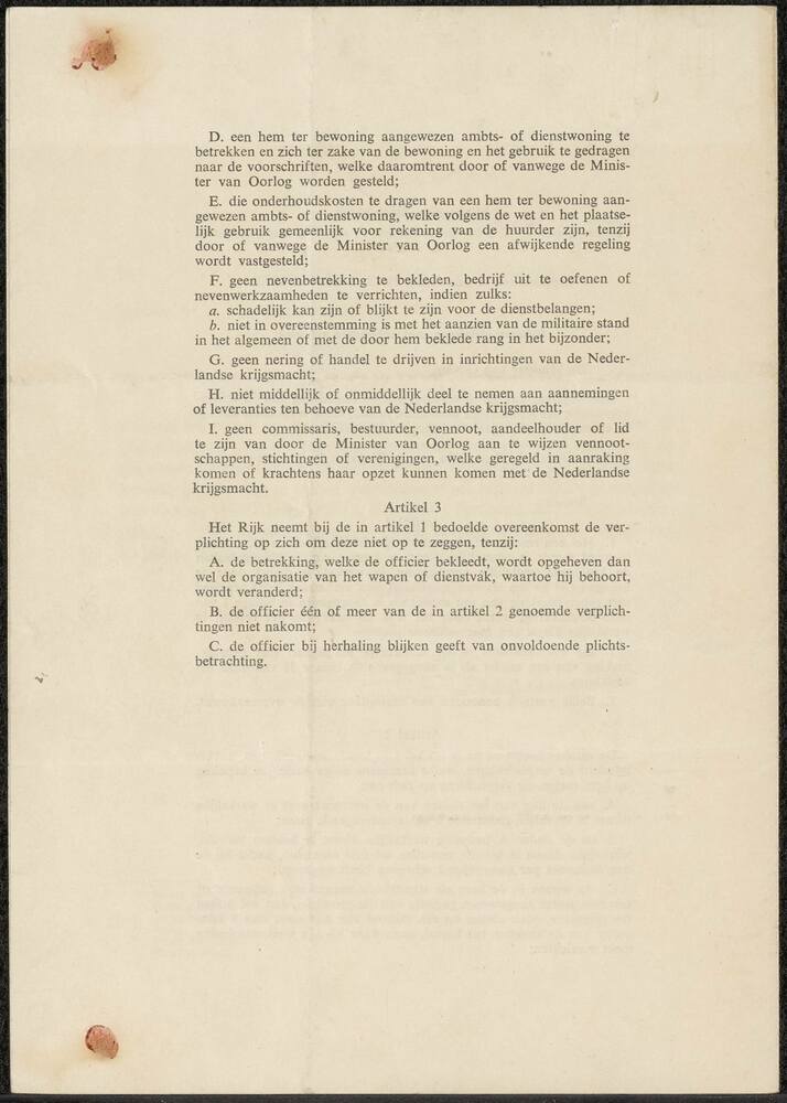 Arbeidsovereenkomst tussen minister van oorlog en re...