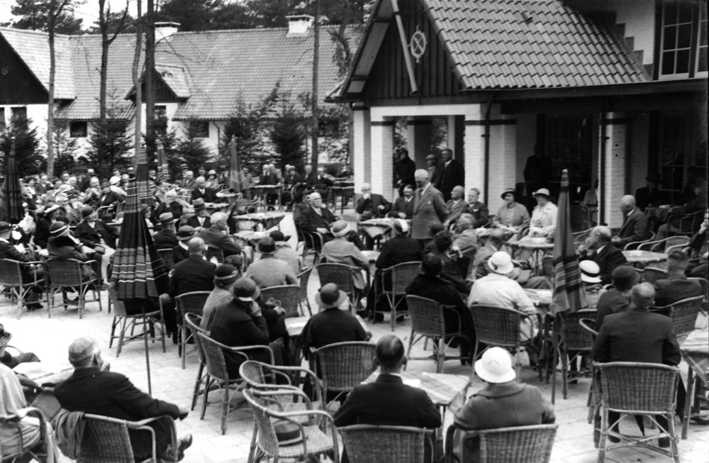 Burgemeester Roosmale Nepveu op het terras van het r...