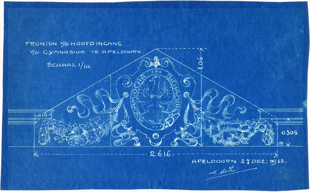 schetsontwerp fronton van de hoofdingang van het Gym...