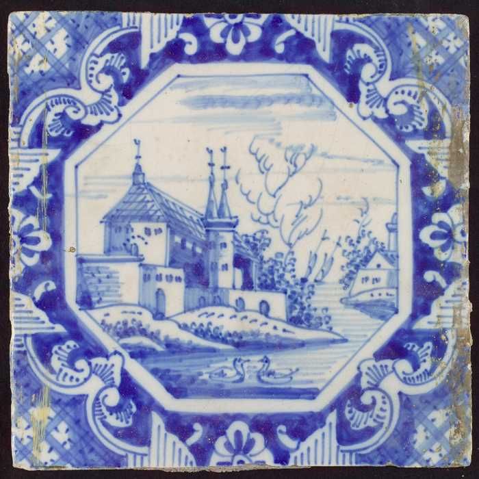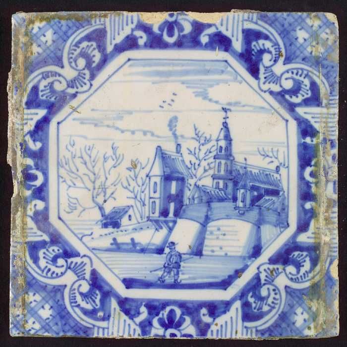 Tegel, blauw op wit, openluchtje, op heuvel stadsmuu...