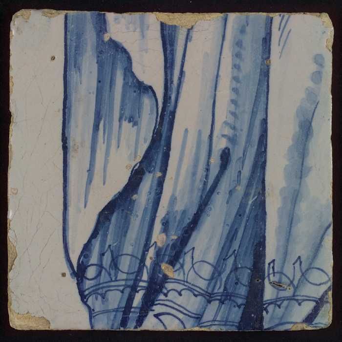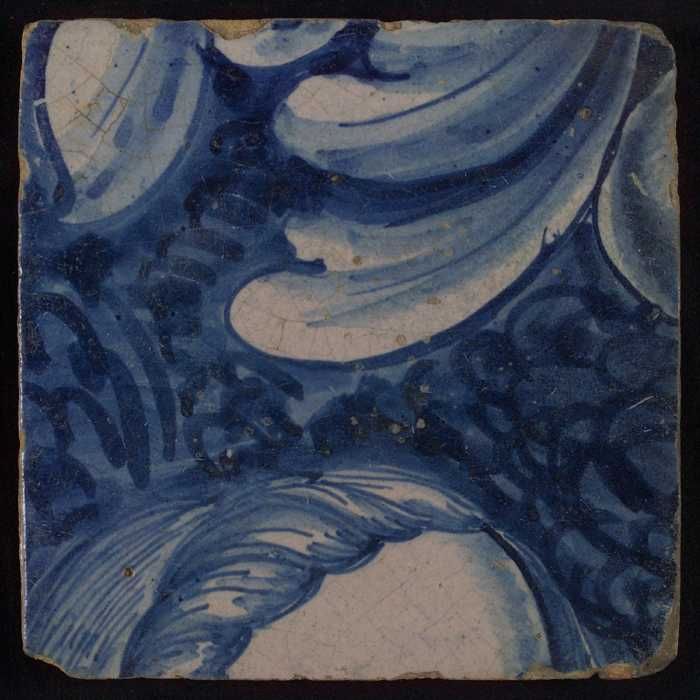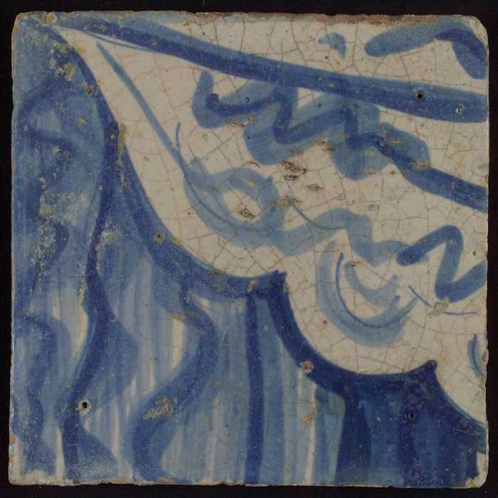 Tegel met in blauw deel van geplooide kleding