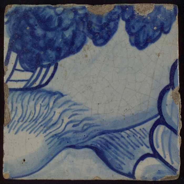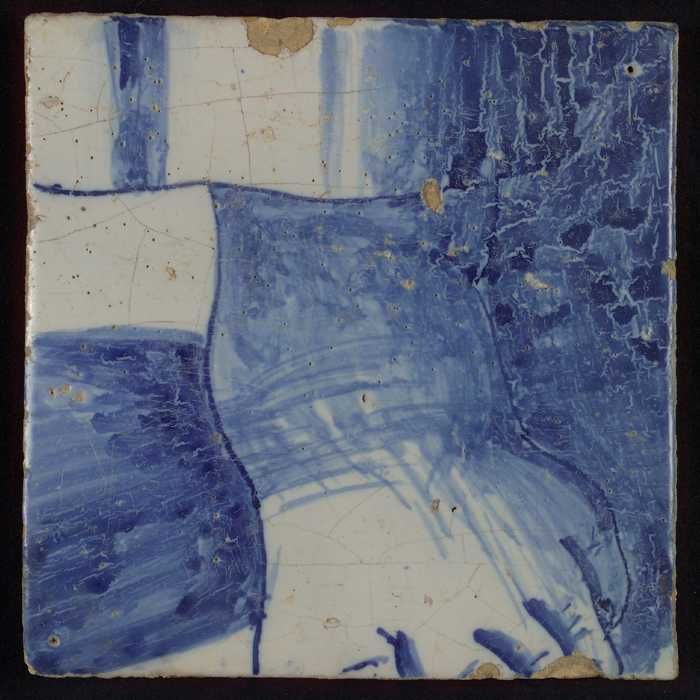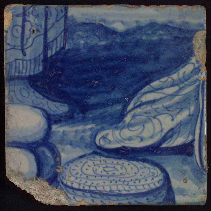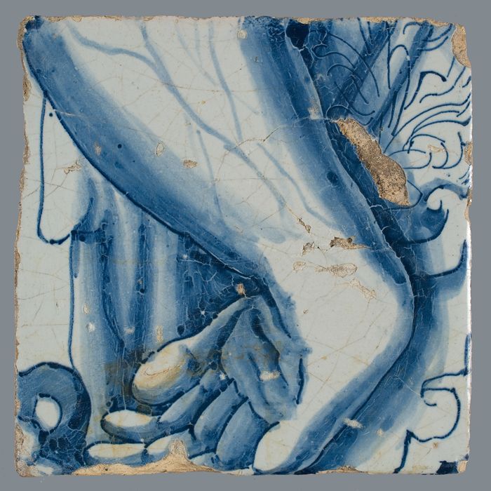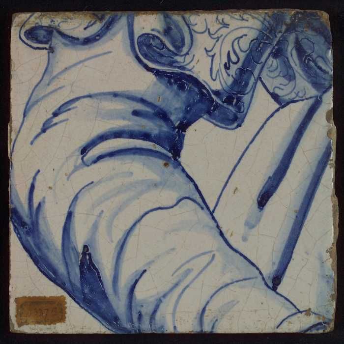 Tegel met blauwe tekening (deel van lijf met arm?)