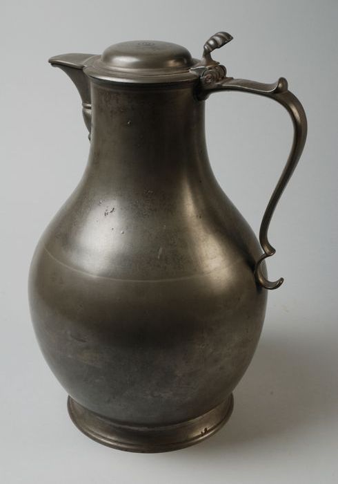 Kan met peervormig lichaam, scharnierend deksel en v...
