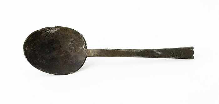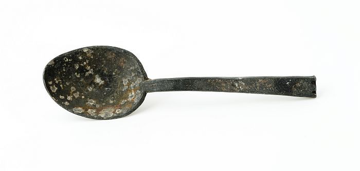 Lepel met ovale bak en rechte platte steel met twee ...