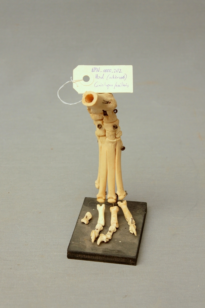 Hond; skelet achtervoet ; op standaard; ontbrekende ...