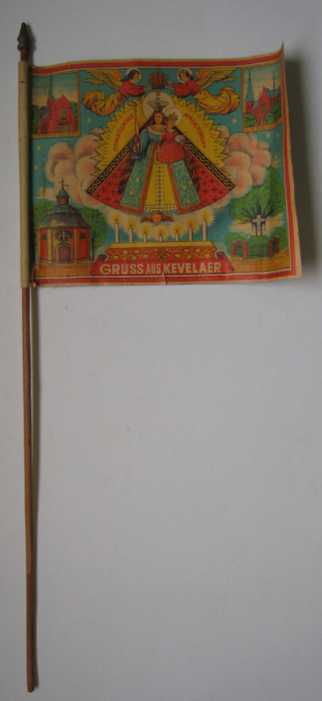 Twee vlaggen uit Kevelaer van papier aan een stok va...