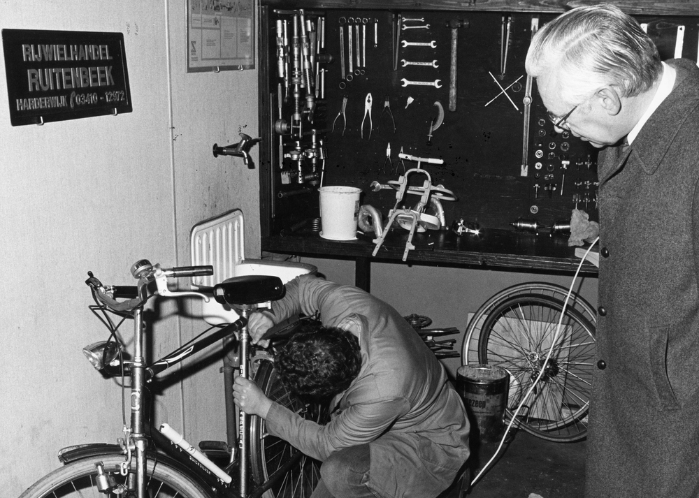Burgemeester J.E. van Boeijen laat zijn fiets voorzi...
