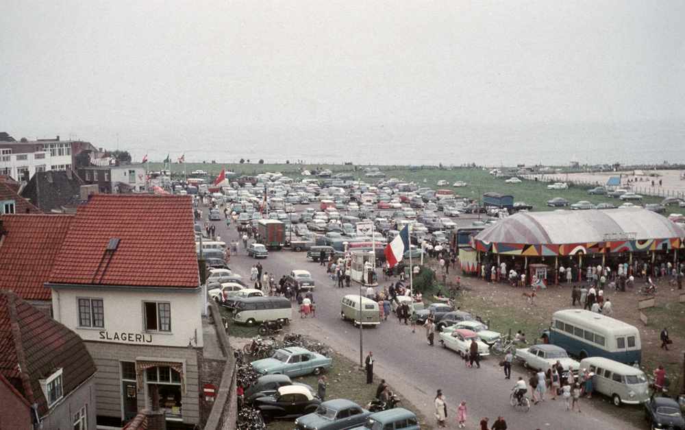 Strandboulevard en de Wellen met kermis en geparkeer...