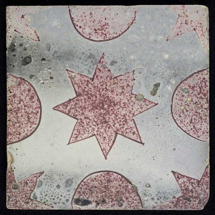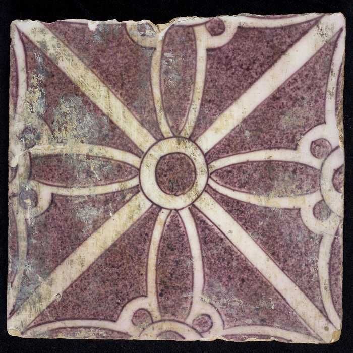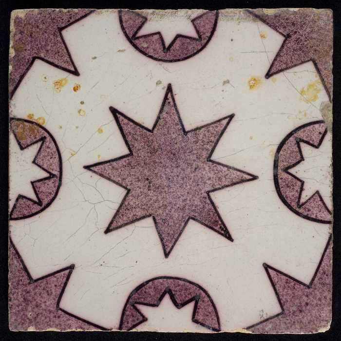 Ornamenttegel, paars op wit, centraal decor, kruisen...