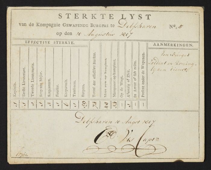 "Sterkte Lyst van de Kompagnie Gewapende Burgers te ...