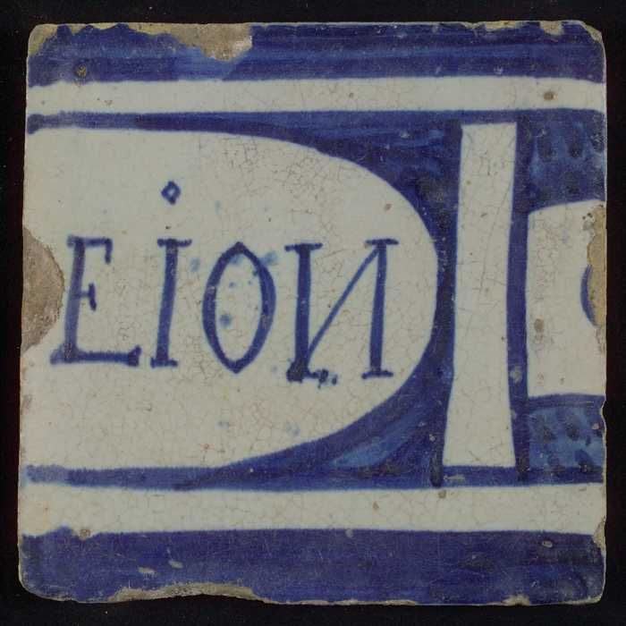 Blauw-witte tegel met "EION"