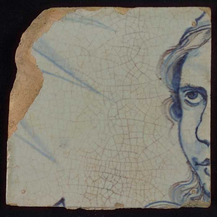 Meerkleurige tegel (blauw, paars) van half gezicht e...