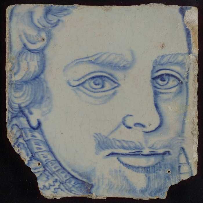 Tegel met blauw portret van Prins Maurits (1567-1625)