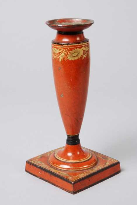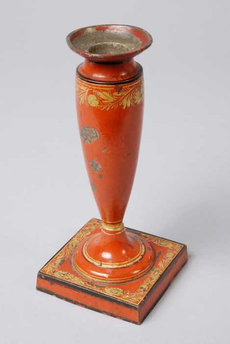 Rood- en goudgelakte kandelaar met balustervormige s...