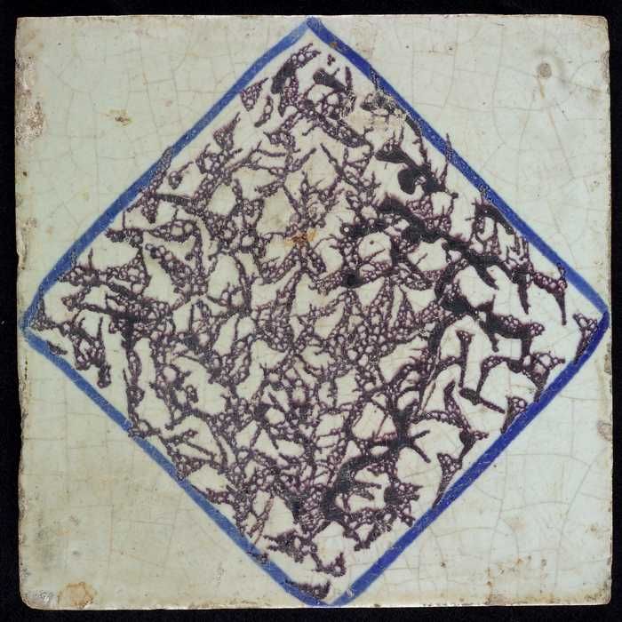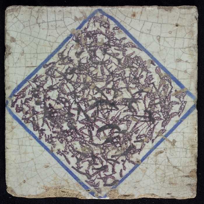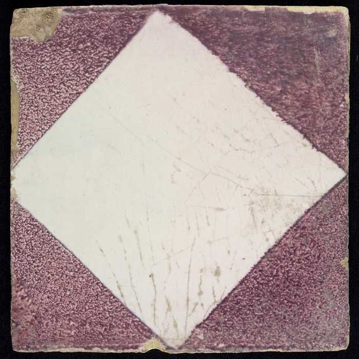 Ornamenttegel, centraal decor, witte ruit, paars ges...