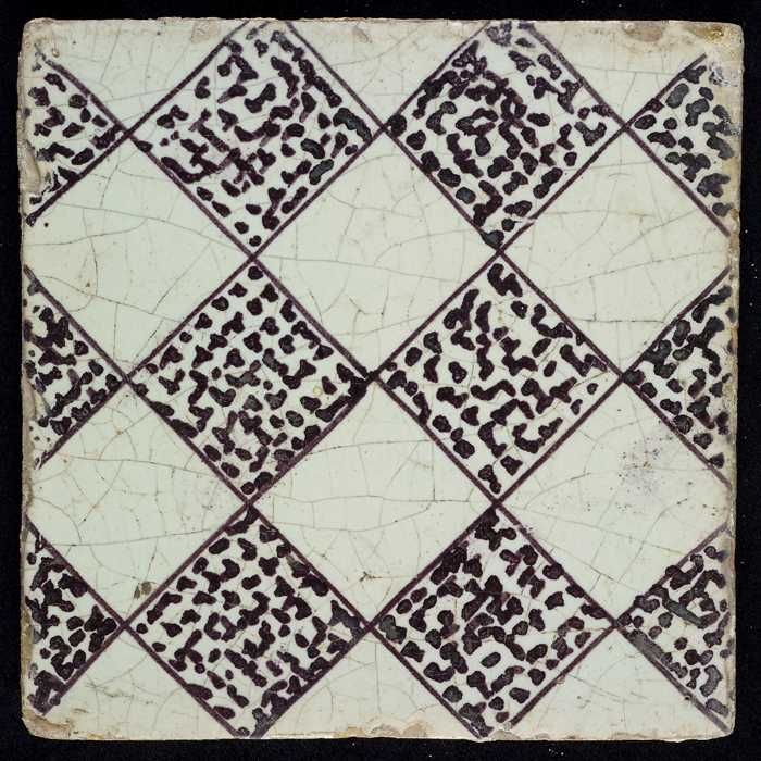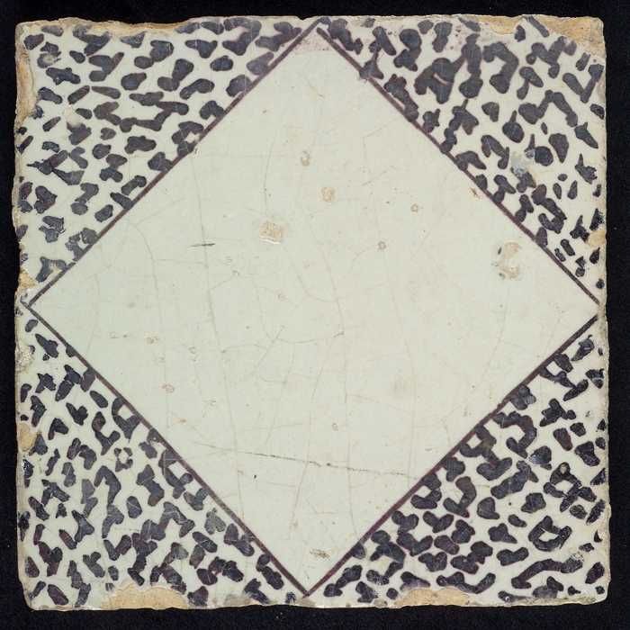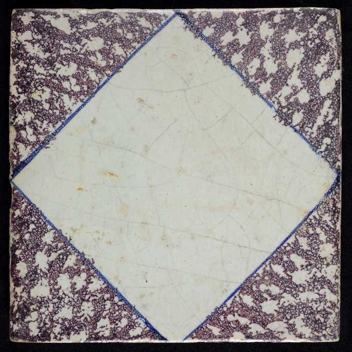 Ornamenttegel, centraal decor, witte ruit met paarse...