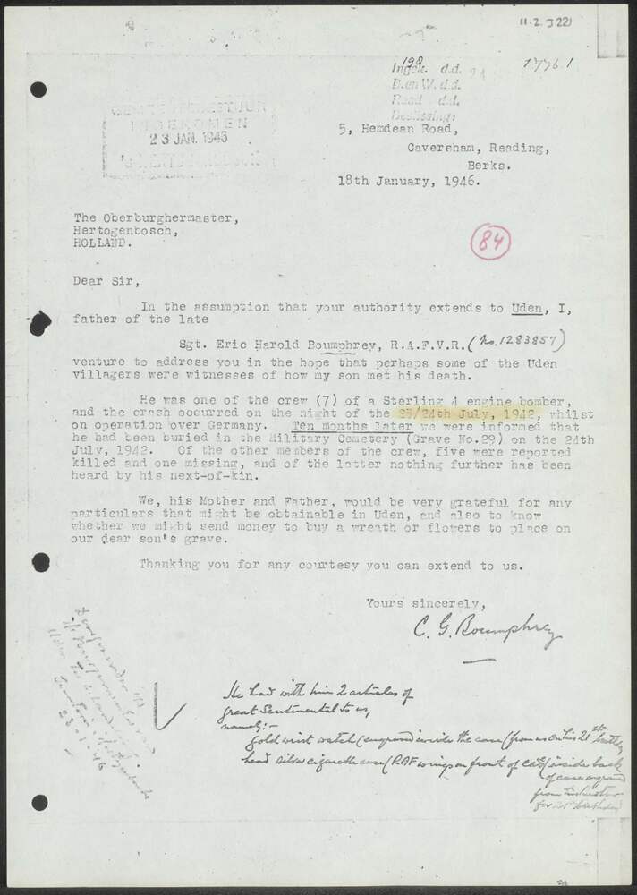 Brief van ouders in Rotterdam aan Gé Verbeek in Wate...