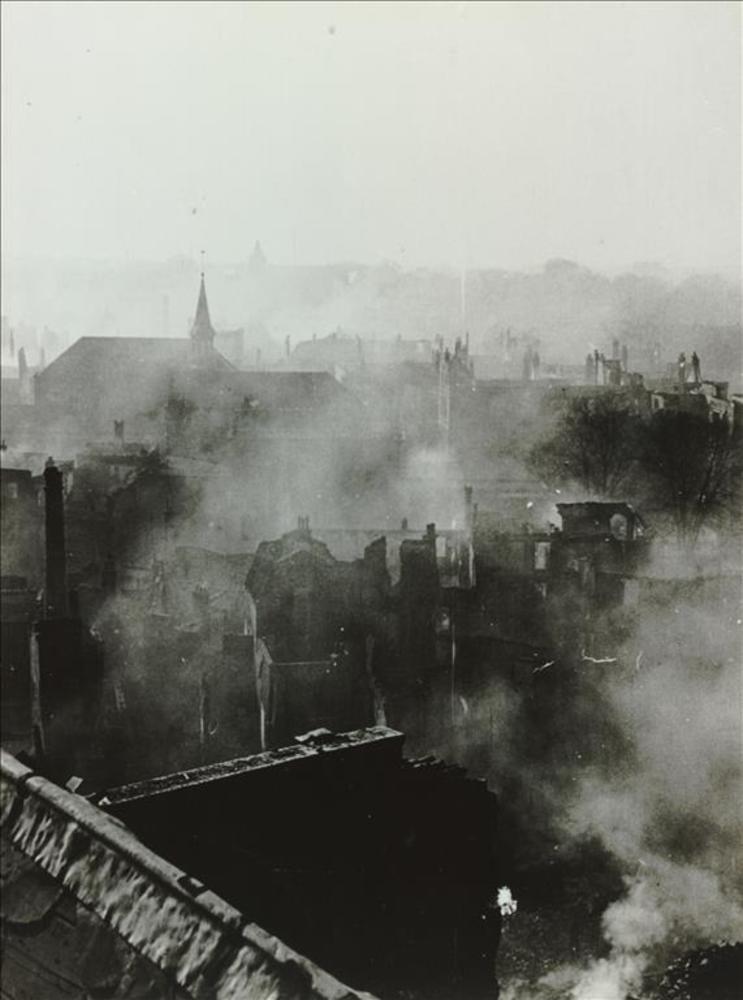 Brandend Nijmegen na bombardement, 23 februari 1944