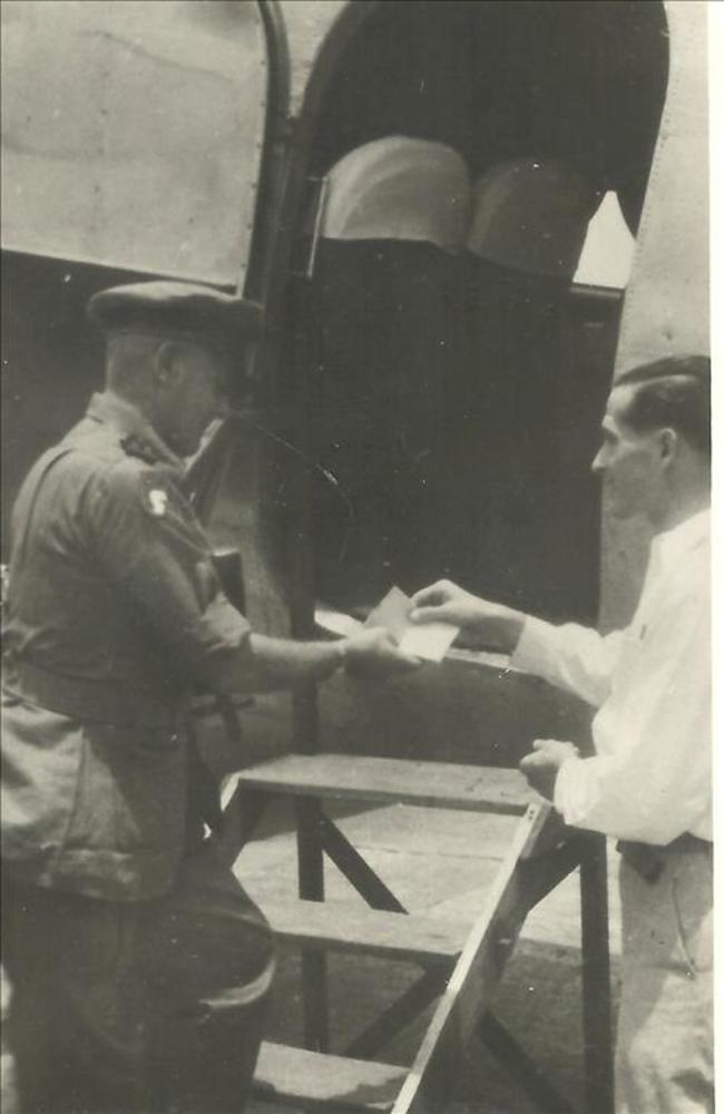 Ned. Indië na WO 2; boarding pass, vliegtuig, militair