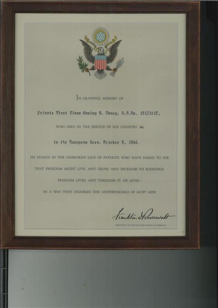 Oorkonde. Presidential Certificate of Condolence. Pf...