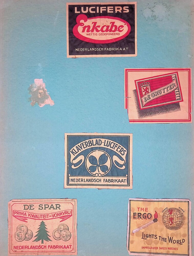 Collectie van uitgeknipte voorkanten van luciferdoosjes