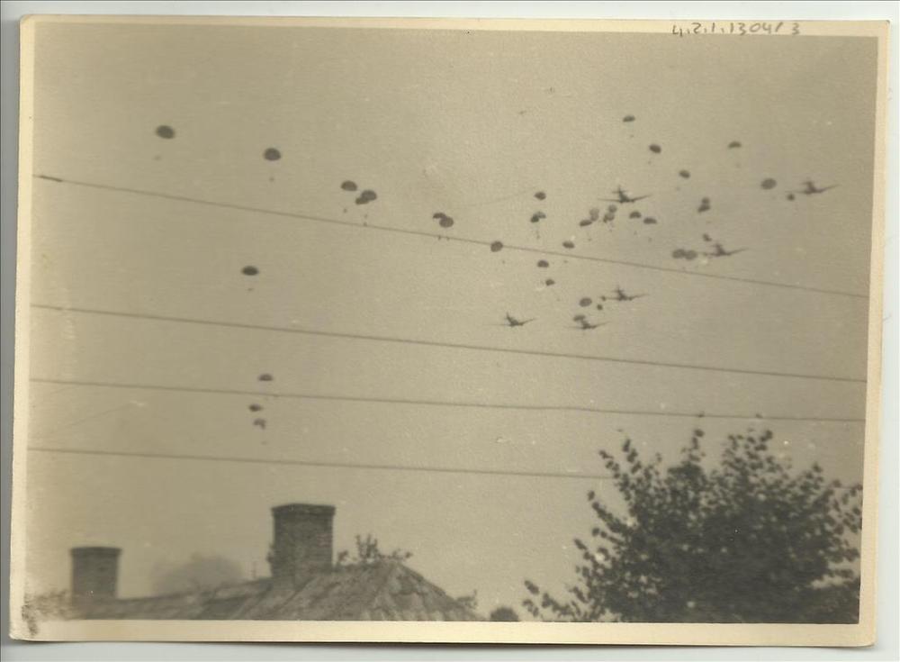 zes C-47's, Groesbeek, meerdere parachutisten, daken...
