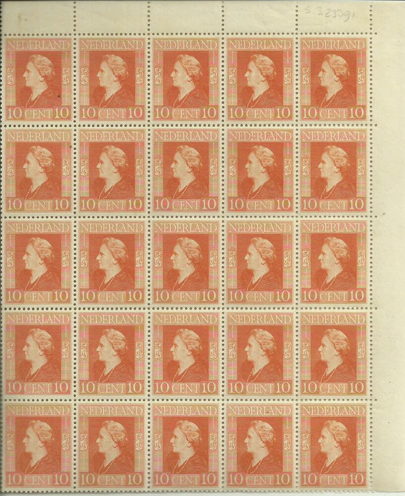 Vel 25 postzegels 10 cent, afbeelding Wilhelmina in ...