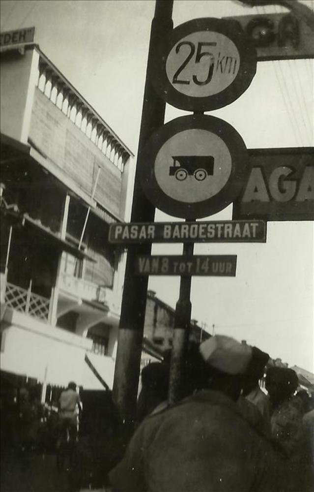 Nederlands-Indië, Marva, straat Pasar Baroestraat, v...