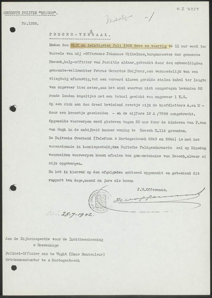 Proces-Verbaal Gemeente-Politie Heesch aan Rijksinsp...
