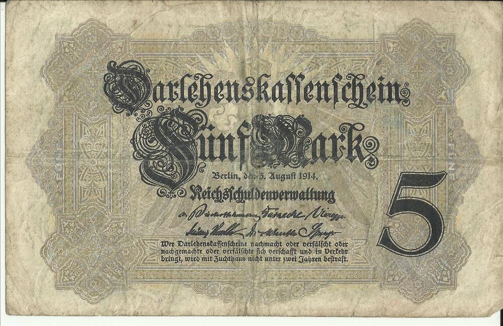 Bankbiljetten 5 Mark Reichsbanknote