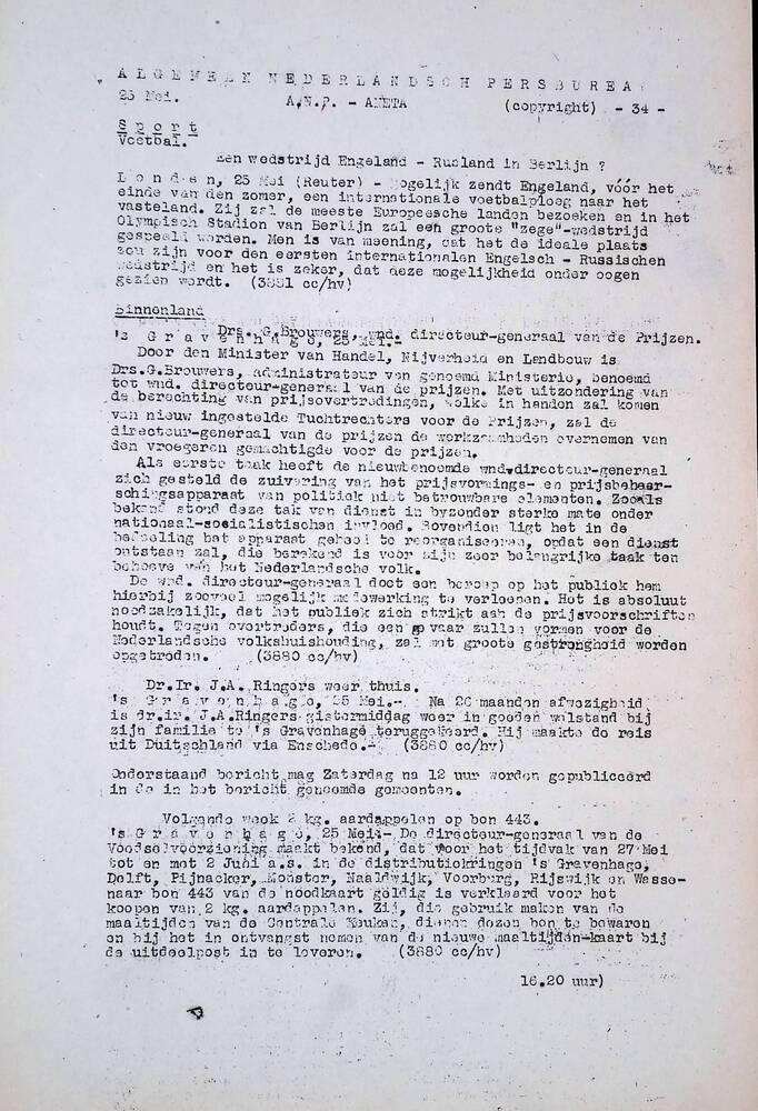 Algemeen Nederlandsch Persbureau, mededelingen, 25 m...