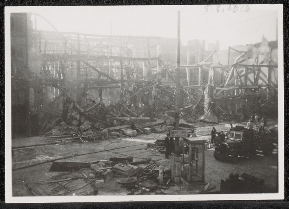 Ruïne V & D. Tekst:"22 Febr 1944 V en D ging ook ten...