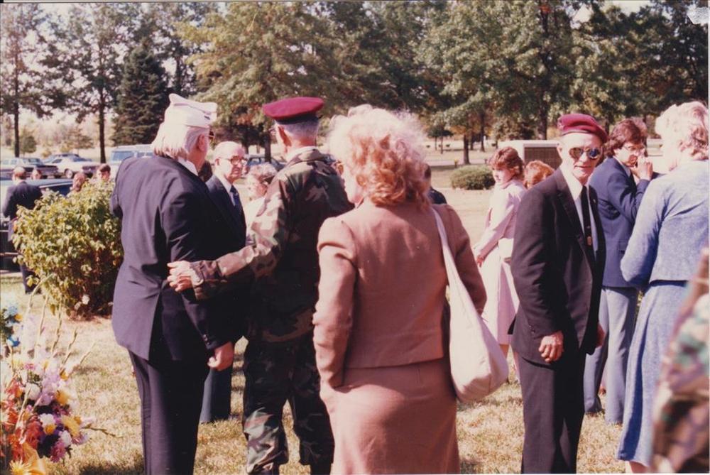 Foto van burgers en (oud)militairen op een begraafpl...