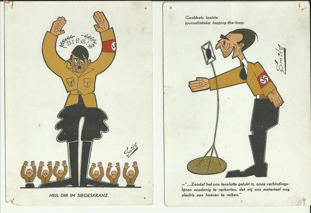 Serie ansichtkaarten, spotprenten van ( Smits )