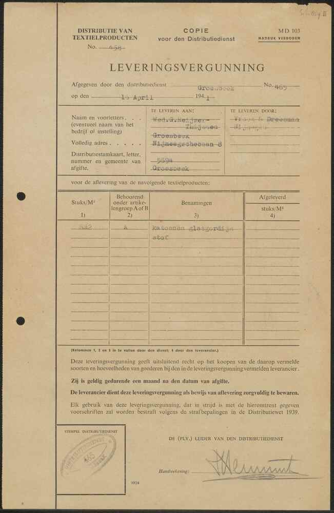 Distributiestamkaart ( tevens bewijs van opneming in...