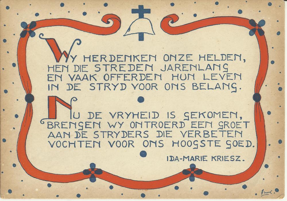 kaart met daarop een gedicht van Ida-Marie Kriesz. W...